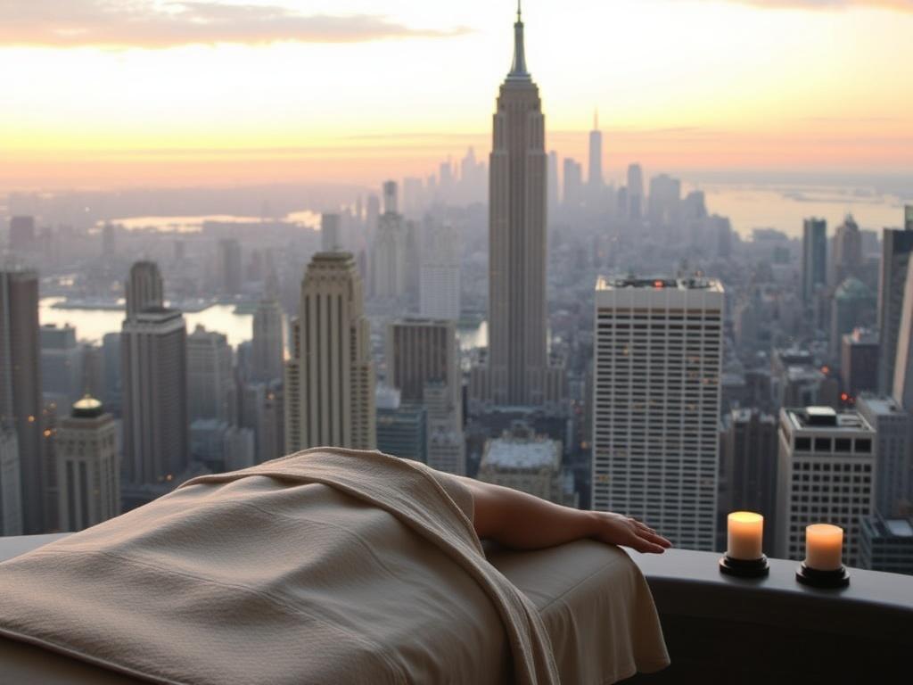 For visuals, choose tasteful, evocative shots: a warmly lit massage room with candles, a professional therapist mid-session (fully clothed as appropriate), a skyline nighttime shot of Manhattan, and candid photos of cozy, dimly lit lounges. Alt text and captions should emphasize mood and professionalism.